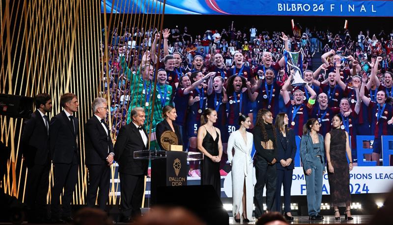 此外,巴萨女足同样不甘示弱,荣膺最佳女足俱乐部,邦马蒂成功蝉联女足金球奖。著名影星娜塔莉·波特曼为她颁奖,那一刻,似乎将女足的光辉和魅力展现得淋漓尽致。