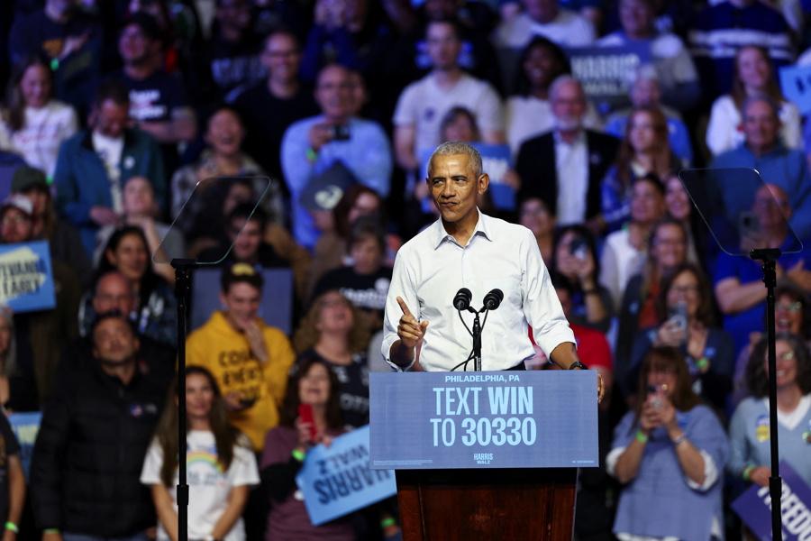 美国前总统奥巴马在费城举行竞选集会,为哈里斯站台拉票
