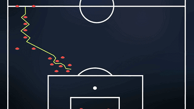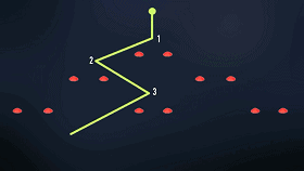 带球者首先要直线通过边路的障碍物,然后进入一片随机摆放的密集区域,盘带通过。