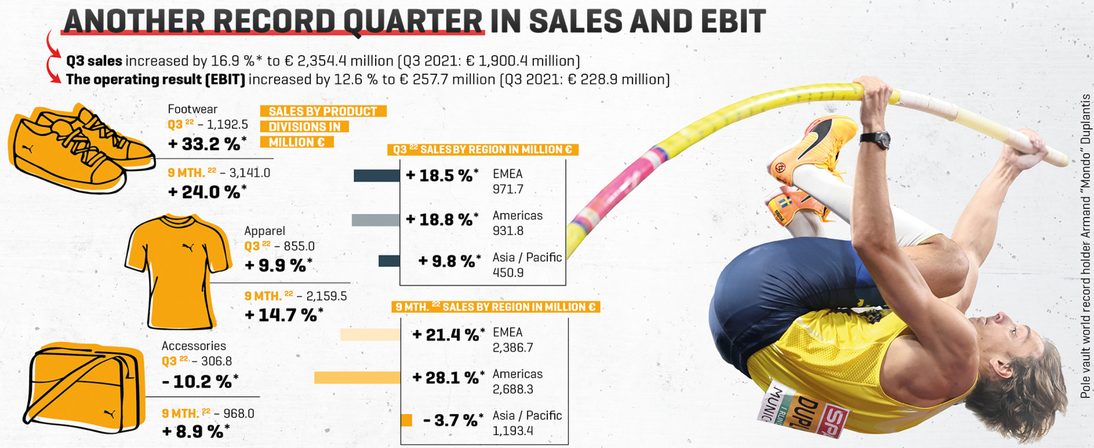 彪马的最新财报中,也提及了营销成本增加对利润的影响:第三季度,包括营销在内的运营费用增长了25.8%,给公司造成了约8.5亿欧元的损失。