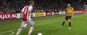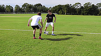 用一只脚的脚内侧将球推向另一只脚,然后触球突破防守队员,这也是球场最有效率的技巧之一。