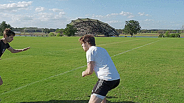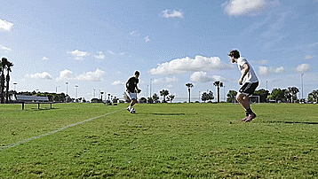 第一个训练,我们要放置两个标志盘,相距7~15码,这取决于我们有多大的空间。