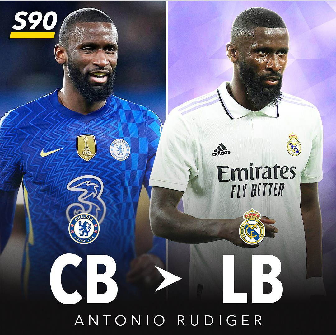 吕迪格 CB→LB在上赛季众多媒体、机构等等评选出的最佳阵容中,切尔西中卫吕迪格几乎总是榜上有名,这也证明了他出色的状态和不俗的实力。今夏,吕迪格离开了切尔西,转投了西甲豪门皇家马德里。不过在皇马,阿拉巴+米利唐的中卫搭档体系已经磨合成行,再加上阿拉巴作为中卫出球能力强的特点也被安切洛蒂十分看中,所以吕迪格很有可能会在一些比赛中被安排在左边后卫的位置上。当然这个位置他也并不陌生,曾经在斯图加特、罗马甚至德国国家队,吕迪格都有过不少作为边后卫出场的经历