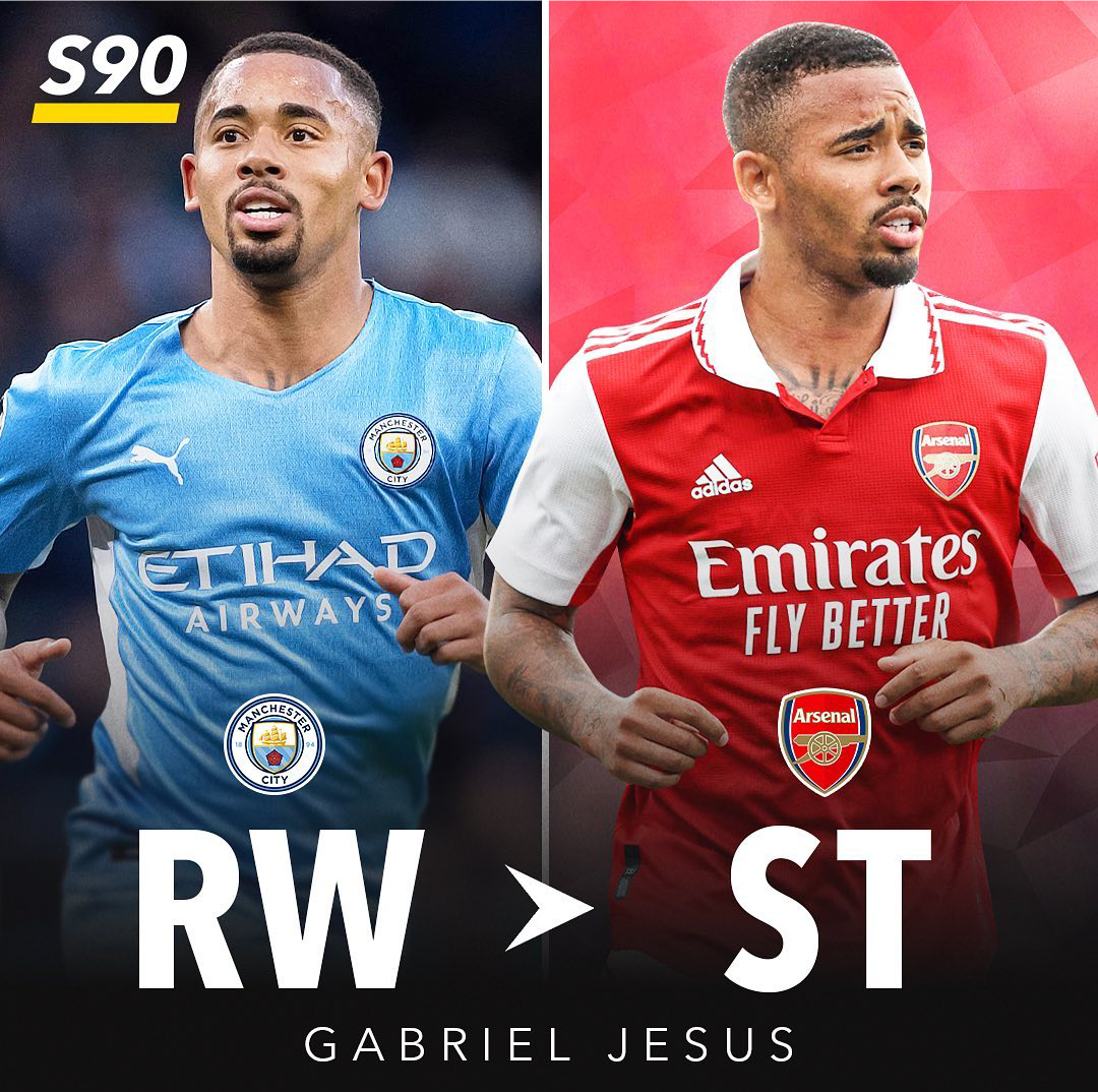 热苏斯 RW→ST与马内的情况类似,巴西国脚热苏斯同样要经历从边锋到中锋的改变。今夏,因为哈兰德和阿尔瓦雷斯的加盟,热苏斯在曼城的出场时间进一步减少,这也迫使他做出了转会的决定。阿森纳抓住机会,支付5200万欧元将其带到了酋长球场,并给予了9号球衣。从新赛季的热身赛来看,这位阿森纳新9号将担任主力中锋的位置,好在这个位置对于热苏斯来说并不陌生,毕竟在他的职业生涯中大部分时间都是作为中锋出场比赛
