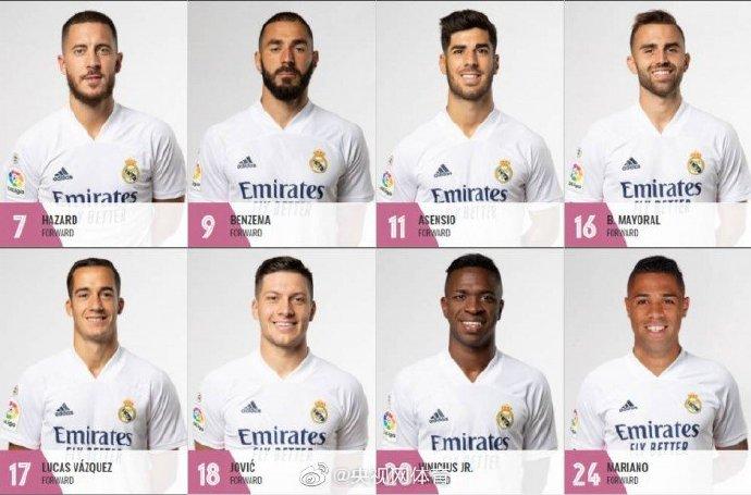 【皇马一线队25人名单及号码一览】皇马官方公布了球队新赛季一线队25名球员名单和所穿号码,具体如下 门将:1-库尔图瓦、29-卢宁; 后卫:2-卡瓦哈尔,3-米利唐、4-拉莫斯,5-瓦拉内,6-纳乔,12-马塞洛,19-奥德里索拉、23-门迪; 中场:8-克罗斯、10-莫德里奇、14-卡塞米罗、15-巴尔韦德、21-厄德高、22-伊斯科; 前锋:7-阿扎尔、9-本泽马、11-阿森西奥、16-马约拉尔、17-巴斯克斯、18-约维奇、20-维尼修斯、24-马里亚诺、27-罗德里戈
