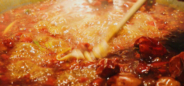 当锅底沸腾,牛油迸发出浓郁的香气,鲜辣、爽麻攻击着舌头与味蕾。