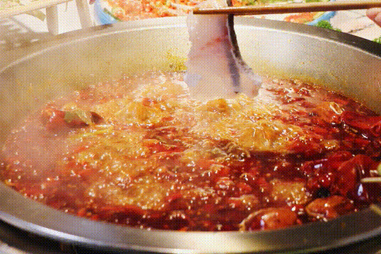 涮好的鸭肠蘸上蘸料,像嗦面一样!一口一根,Q弹爽滑,又香又脆,每一口都是舌尖上的鲜活刺激!