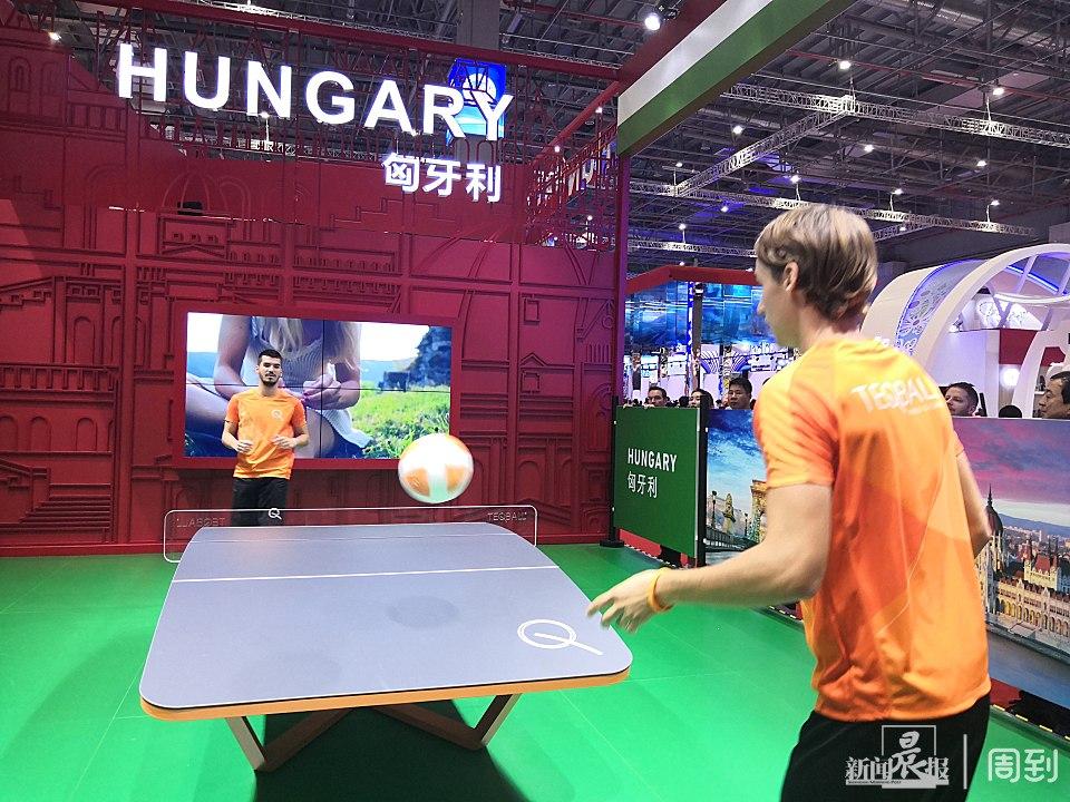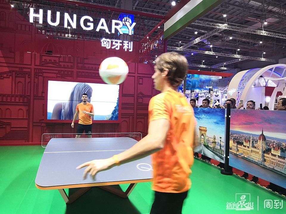你见到过在桌上踢足球吗?今天上午,记者在第二届进博会国家展匈牙利馆得以一见。