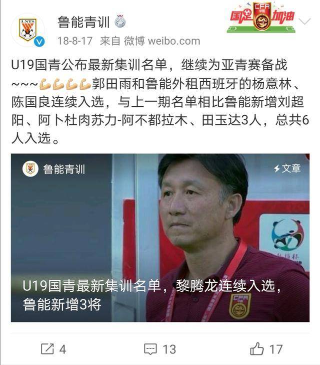 田玉达17岁就入选了u19国青队
