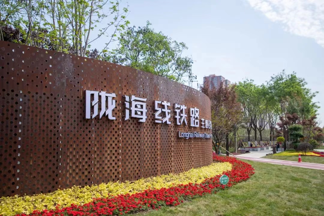 陇海线铁路主题公园按照“十年树木成林秀,生生不息竞芳华”的绿色理念设计,采用“曲直、遮透、色艳”的造景手法,打造了陇海故事、启程追忆、陇海记忆、轨道时速、流光掠影、岁月印记、归家乐园七大景观节点,是一个“记忆+现代”的体验式绿地空间。