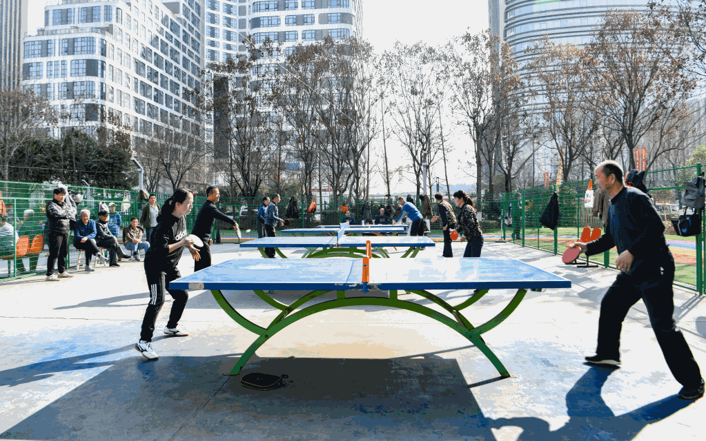 公园内布置6个富有设计感的多功能主题活动广场,建设有十一人制足球场1个、五人制球场4个,网球场4个、篮球场2个,既有适合中老年人的健身广场,也有适用于青少年儿童的体育场馆,是曲江新区建造的集游憩休闲、健身运动、社区服务为一体的又一项曲江惠民工程。
