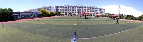 学校足球运球绕标志杆测试现场