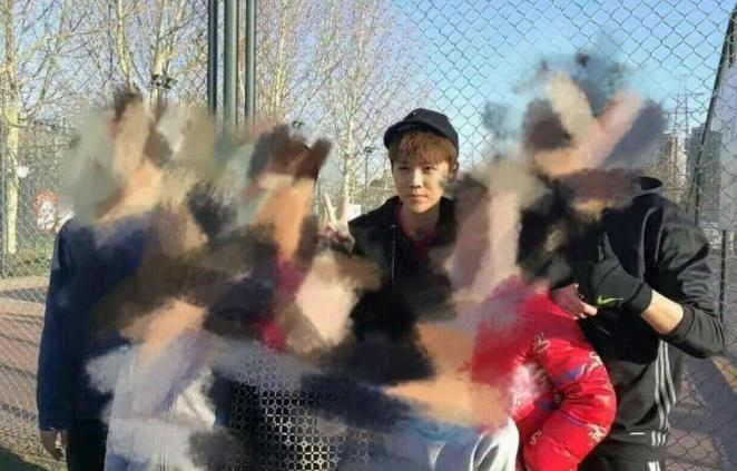 被人在足球场附近认出来还合影留念,甚至还送签名送祝福!