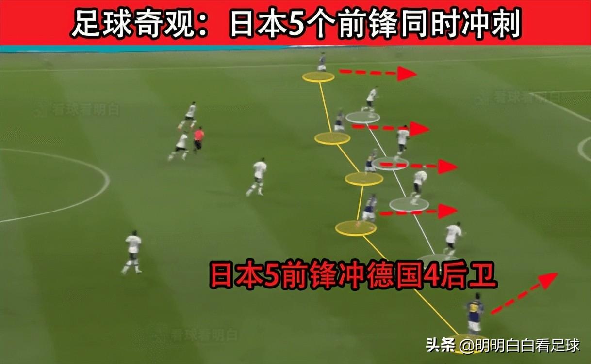 三“冲刺”,上次小酒也介绍过,指的是下半场日本一口气换上4个主力前锋,组成5前锋阵容来冲击德国队。