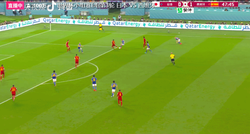 北京时间12月2日凌晨3点,2022卡塔尔世界杯小组赛第三轮,日本队对阵西班牙队的比赛在哈利法体育场进行。上半场,莫拉塔头球破门,三场小组赛打进3球;下半场,日本队在142秒内由堂安律和田中碧连进两球反超了比分。最终,西班牙队爆冷1-2不敌日本队。积分榜上,日本队拿到6分以小组第一出线,西班牙队积4分获得第二,也晋级16强。