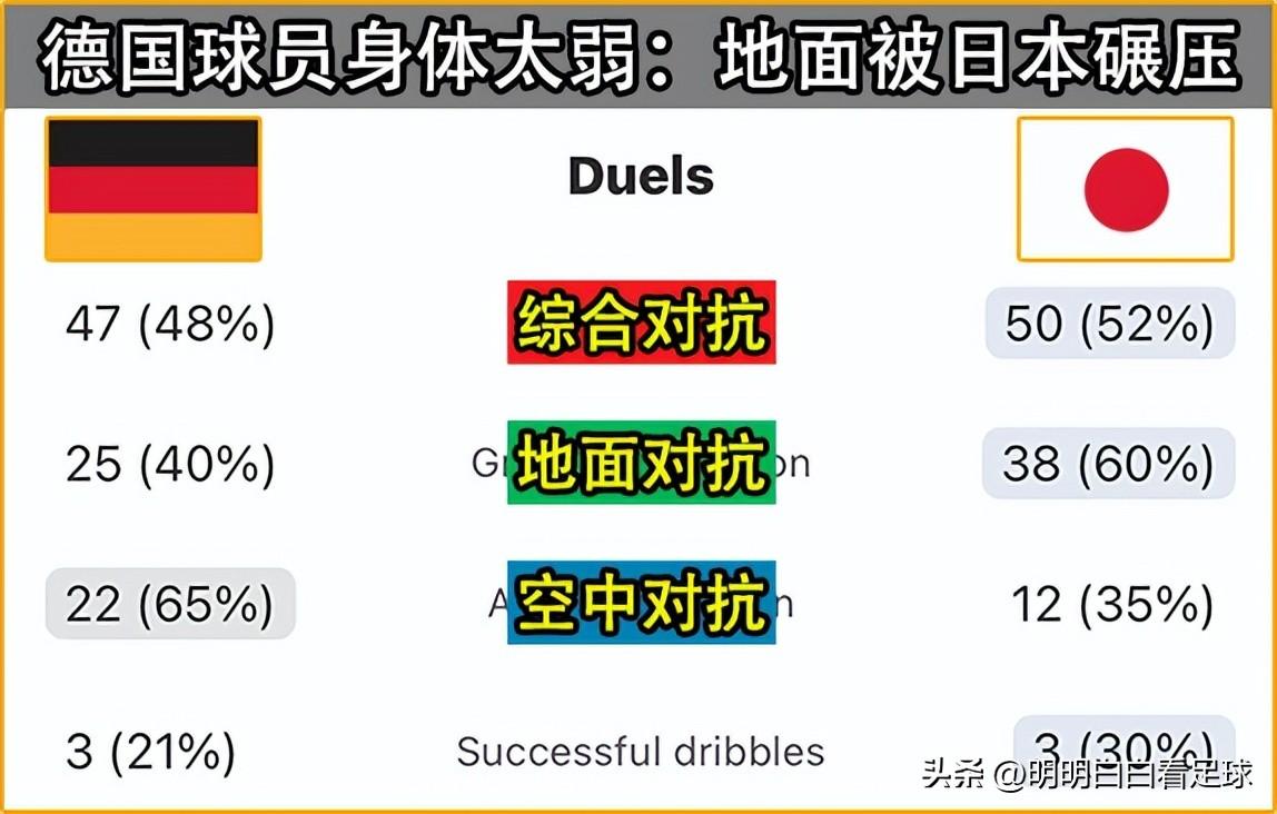 地面对抗他们是碾压了德国,因为德甲现在越来越软了嘛,拼身体肯定拼不过日本人的。