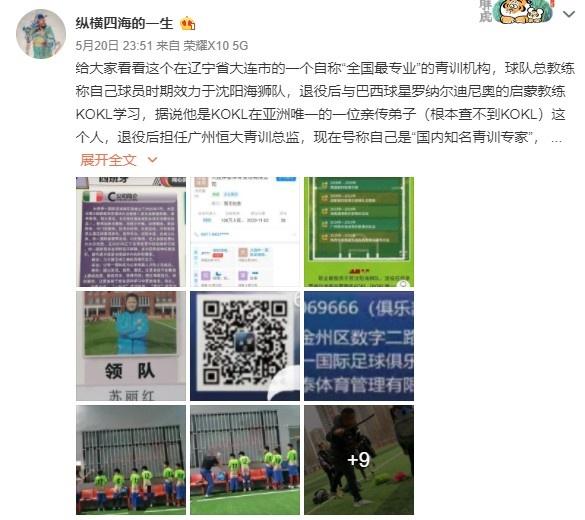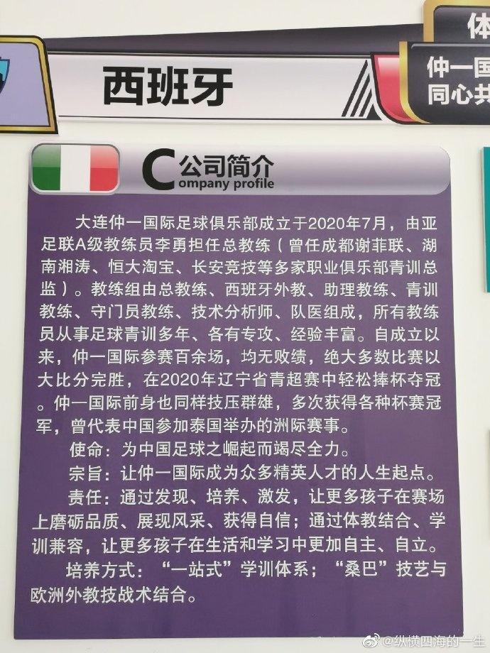 给大家看看这个在辽宁省大连市的一个自称“全国最专业”的青训机构,球队总教练称自己球员时期效力于沈阳海狮队,退役后与巴西球星罗纳尔迪尼奥的启蒙教练KOKL学习,据说他是KOKL在亚洲唯一的一位亲传弟子(根本查不到KOKL)这个人,退役后担任广州恒大青训总监,现在号称自己是“国内知名青训专家”,但百度百科根本搜不到此人任何资料(此人姓李,暂时不公布完整姓名),此俱乐部目前宣称与西乙B级联赛的球队(进钧体育公司旗下的莱里达体育俱乐部)有合作,据了解投资球队的老板姓何,两人还共同组建了一个名为“仲泰体育”的公司,何占51%股份,李占49%股份,目前在大连开发区金港中学训练。
