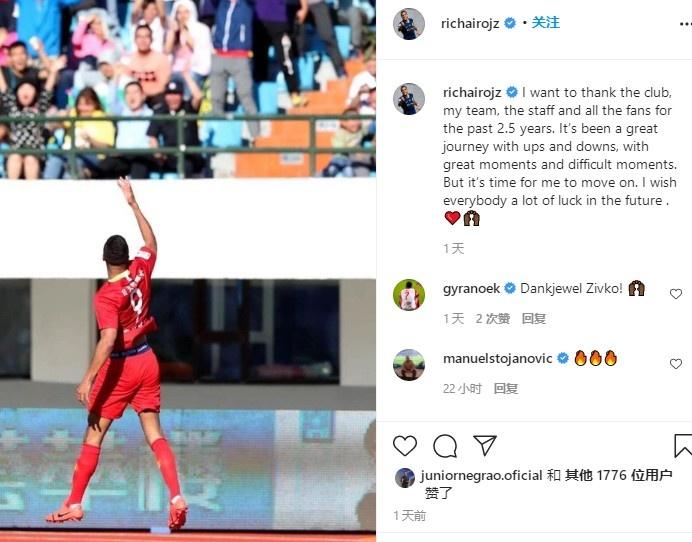 直播吧8月21日讯 通过个人社交媒体平台,亚泰外援日夫科维奇告别球队。