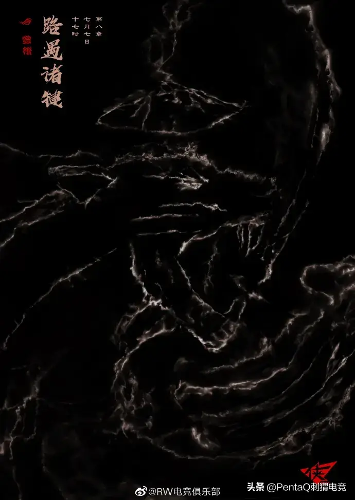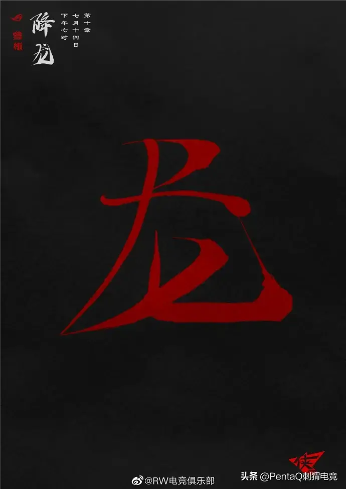 RW夏季赛的赛后比分海报使用的是上图的这个模板。排版本身是没有什么问题的,关键在于作为视觉主体和出于视觉中心的两个硕大的手写毛笔字体。字体的选择还可以有更优解。