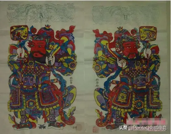 木刻版画是在木板上进行雕刻图像,再印刷于纸面的美术作品,因为工具的特殊,木刻版画常常出现粗犷的线条和颗粒感。木刻版画的成品最常见的是门神贴画。