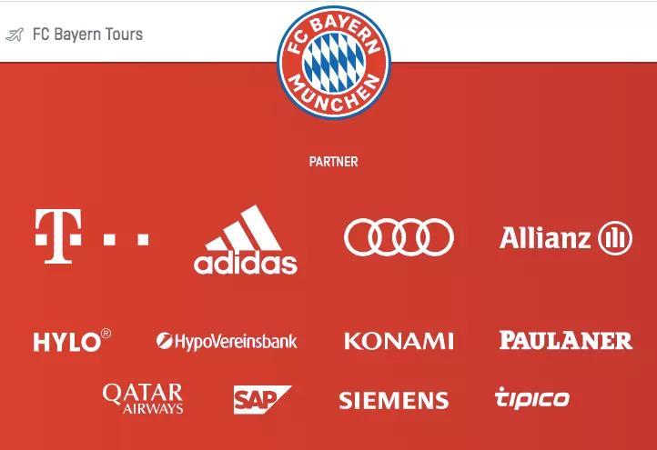 拜仁的赞助商们,阿迪、奥迪、西门子、卡塔尔航空赫然在列