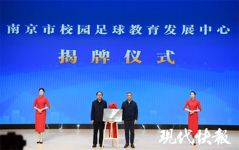 在南京市校园足球高质量发展会议上,“南京市校园足球教育发展中心”正式揭牌。未来将依托发展中心,打造校园足球竞训数智平台,为科学训练、人才选拔、伤病预防等提供精准数据分析,辅助教练更合理、更科学地训练、教学,让足球教学做到有据可依。