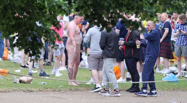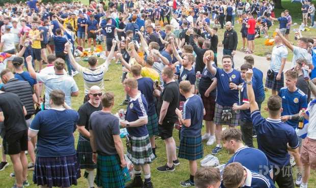 根据英国《太阳报》的报道,昨天便有上千名球迷集会在伦敦著名的海德公园,来享受着本场比赛带来的激情,很多苏格兰球迷表示,本场比赛如果苏格兰队能够取胜,其意义并非仅仅是赢得一场足球比赛,而是属于整个国家的胜利。而更有一位激进的男性球迷在大庭广众之下便脱得一丝不挂,最后被伦敦警察现场带走。