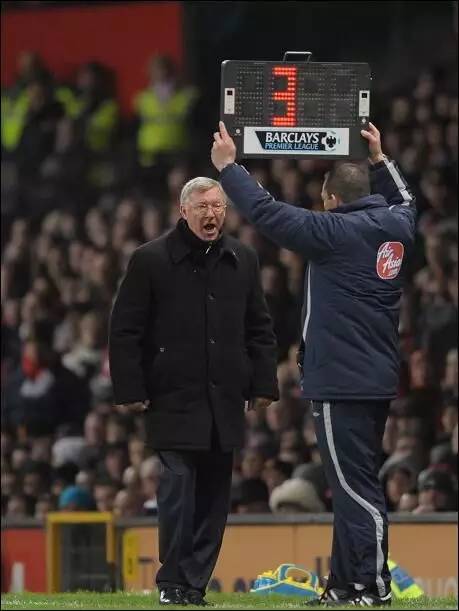 在常规时间结束前,主裁判会向场边的第四裁判示意补时多少,再由第四裁判举牌向全场球迷和两队球员教练说明补时几分钟。