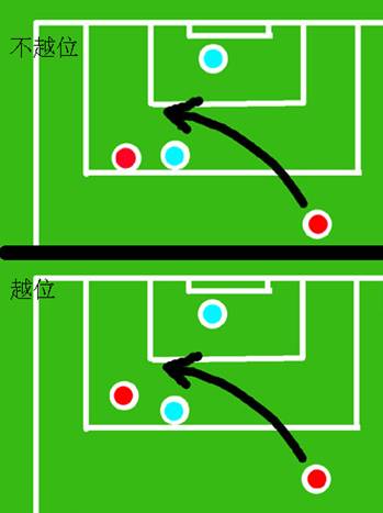 在进攻方传球球员起脚的瞬间,接球球员比倒数第二名防守球员距离球门更近,同时比球距离球门更近,并试图借此位置进球或干扰比赛,就会被判罚越位。