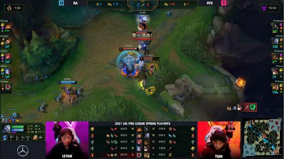 2021 LPL春季赛季后赛第二轮首场比赛,常规赛排名第五位的FPX坐镇迎战从第一轮中晋级的RA战队。在前两局都比较顺利地击败RA拿下赛点后,FPX在第三局落败,并且第四局也一度陷入危机,险些被RA扳平比分。最终通过Doinb的绕后成功破局完成翻盘,3-1晋级季后赛六强!