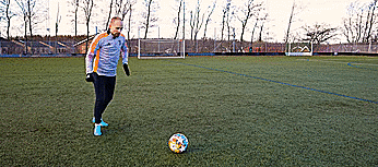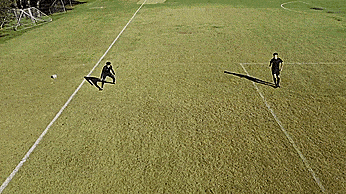 接下来我们学习侧身凌空射门,如果球从空中飞来,我们用胸部把它停下来,它会在地上蹦蹦跳跳,我们需要调整好才能来一个长传,而实际在比赛中,我们很难有这么充裕的时间。