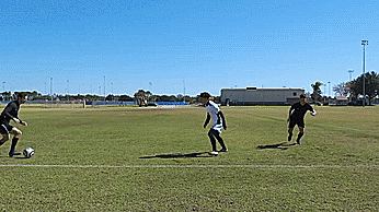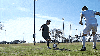但如果我们用脚的外侧传球,我们就能立刻传球给队友。
