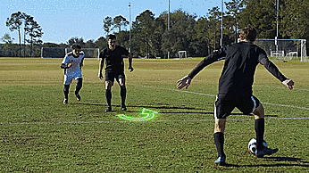 以下面场景为例,如果进攻者多触球几次,那么很可能会给防守者足够的反应时间实施封堵。
