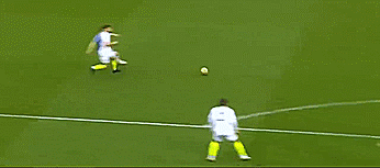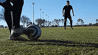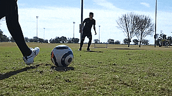 这个传球的关键是要把它放低,正如它的名字所示,滑过草地,就像下面这样,非常有力,非常低,这里的技术是,和普通长传球一样,用脚的骨头凸起部分击球。