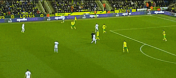 例如,在下面场景,如果我们平行传给高速前进的队友,球就会落在他们的后面,破坏进攻的速度。