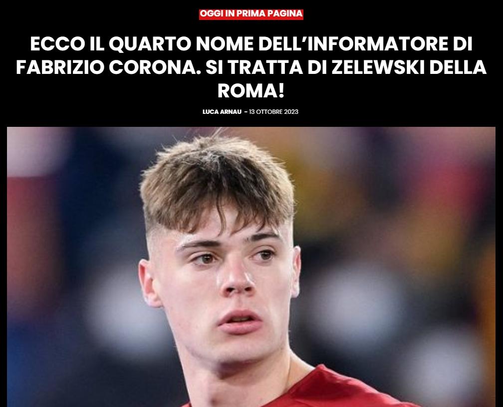 直播吧10月13日讯 意大利知名狗仔记者法布里奇奥-科罗纳今天曝出了第四名涉赌球员的名字:他就是罗马21岁的波兰新星扎莱夫斯基。
