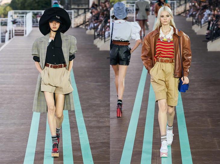 同样也宠幸了足球袜的还有Miu Miu的2020年早春度假系列。摩登少女们都纷纷穿起了足球袜,搭配宽大廓形的外套和夸张的软边太阳帽,上大下窄的搭配技巧让身材比例更加出挑,芭姐默默地放进了“穿搭参考文件夹”里。