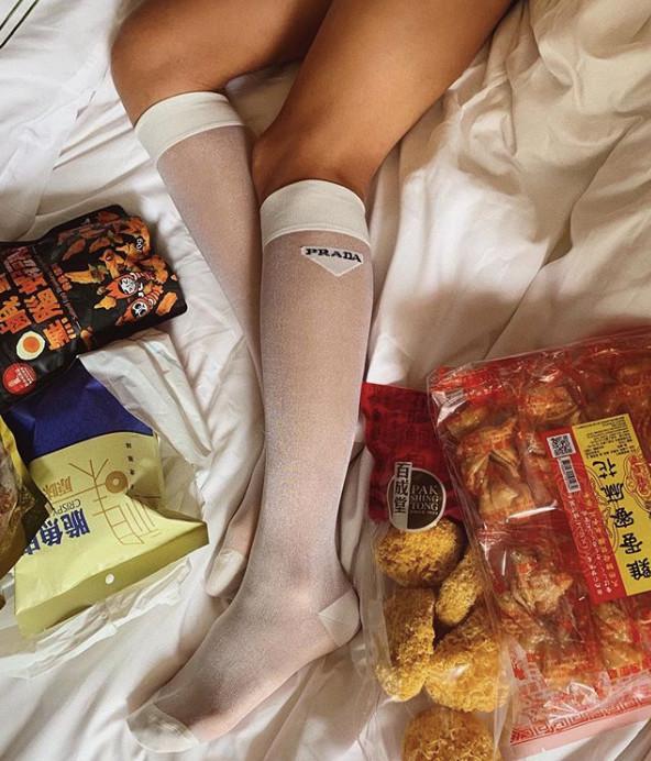 而这双Prada的足球袜更是在时尚圈掀起了一阵热潮,时装博主们纷纷上阵抢着给“露出”。
