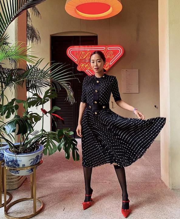 其中Aimee Song就真的是中了这双足球袜的“邪”,那阵子可以说是走到哪穿到哪~ 搭配过膝连身裙,优雅的淑女风格没问题~