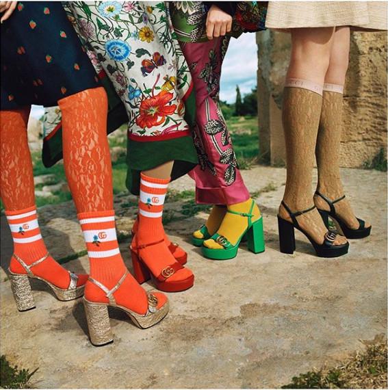 足球袜翻红其实不是一天两天了,最近也越来越多的出现在大牌系列中。Gucci的早秋系列中,就能看到好多足球袜的影子。