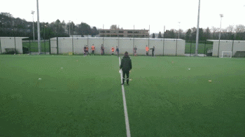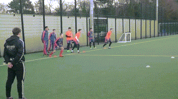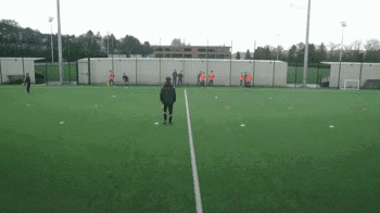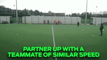 两名速度相差较小的球员为一组,其中一名球员尽力通过跑动摆脱另一名球员完成“冲关”。