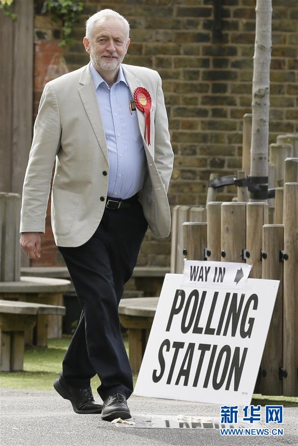 5月3日,在英国伦敦,英国工党领袖科尔宾前往投票站投票。当日,英格兰举行地方议会换届选举。 新华社发(蒂姆·爱尔兰摄)