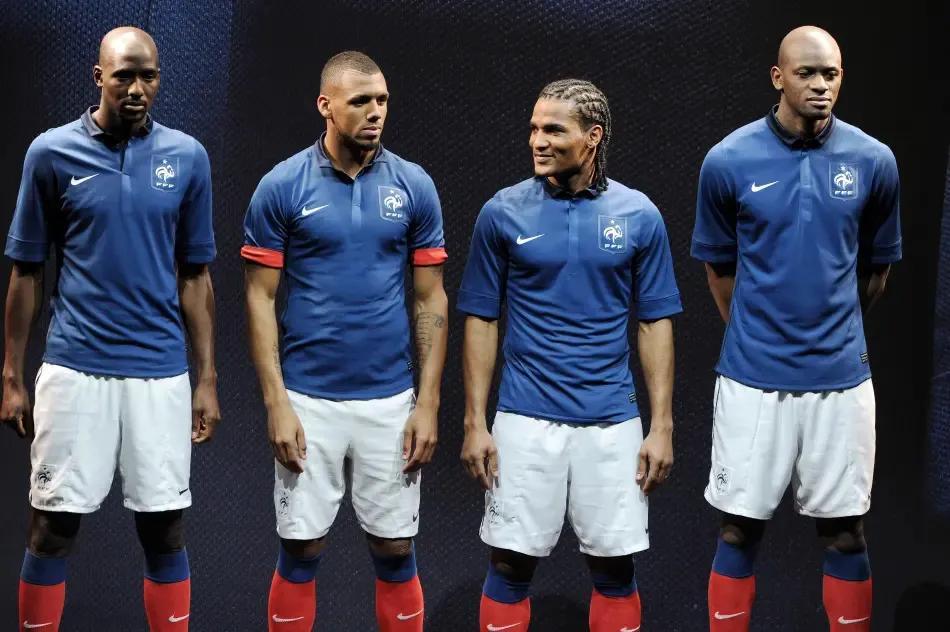 法国的国旗颜色是蓝白红,法国队的主队队服是蓝色。