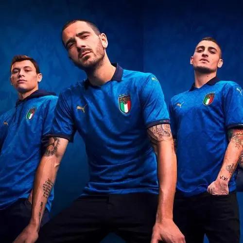 意大利队主场球衣是蓝色,被誉为地中海蓝。意大利队是我国很多球迷喜欢的队伍,这个球队的队员颜值高,身材好,就是一支行走的模特队,拥有许多女球迷。可惜的是,他们已经连续两届缺席世界杯主赛场了。他们球衣的颜色来源有三种说法,一是向天空、海洋(地中海)致敬。二是在一次比赛中由于天降大雪,他们被迫穿了一件蓝色队服,从此成为传统。三是也就是公认的真正的原因是由于萨沃伊家族 ,这是一个在二十世纪初统治意大利的王朝。这个统治者选择蓝色作为主色调,因为它代表自己是圣母玛利亚地幔的衍生物。因此意大利队选择了蓝色。