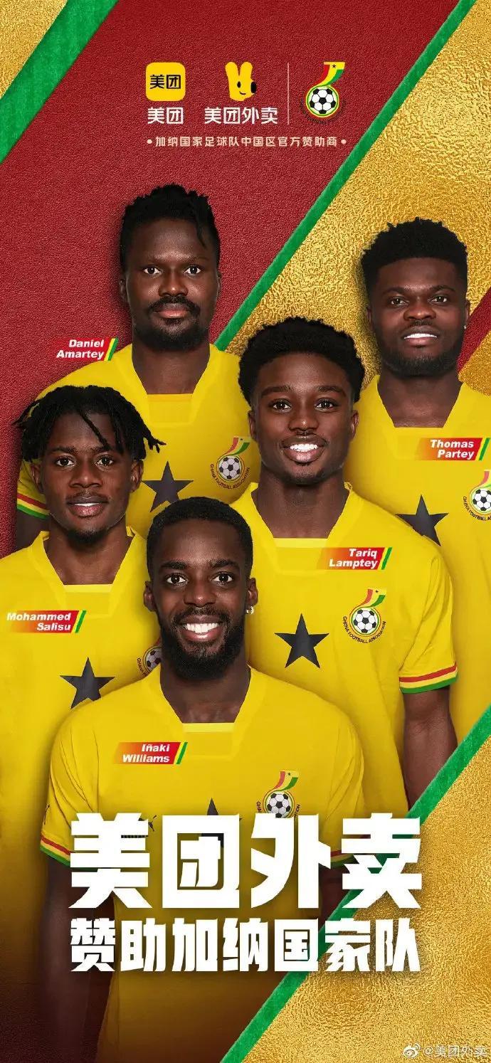 特别有趣的是,加纳队员身穿美团外卖的服装参加赛前训练,大家都以为是加纳球衣撞衫美团外卖,谁知道,美团专门声明,他们确实赞助了加纳球队。