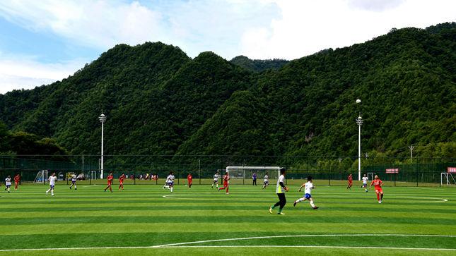 留坝县营盘青少年足球训练基地位于秦岭深处,与群山、农田相得益彰。