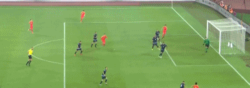 主帅里皮在场边向弟子鼓掌,而看台上的观众掀起了人浪,已经玩嗨了!第23分钟,关岛门将失误,杨旭从身后断球将球打进空门,比分变为4-0!第30分钟,杨旭再进一球,上演大四喜。比赛早早失去了悬念,后面的比赛只剩下赢几球的悬念。