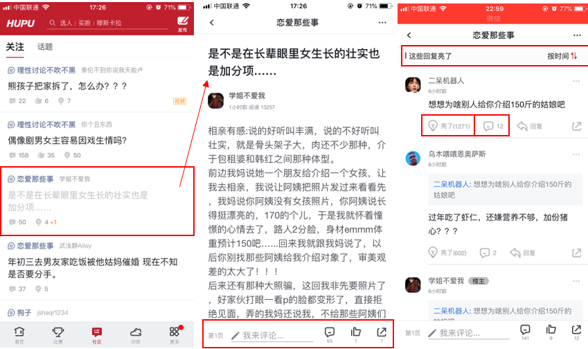 ①两个产品都有意发展“资讯+社交”的模式,以“主帖+评论+点赞”为主要形式。