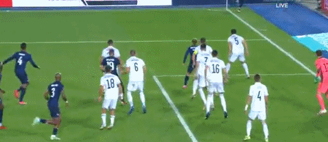 第84分钟,替补本泽马出场的马夏尔上演快乐足球。他在带球突破时不慎趟大,想够球时脚下打滑,自己将球踢出了底线。法国队在少打一人的阶段攻势渐微,波黑队也没能制造威胁。最终,全场比赛结束,法国队1-1战平波黑队,双方各取1分。