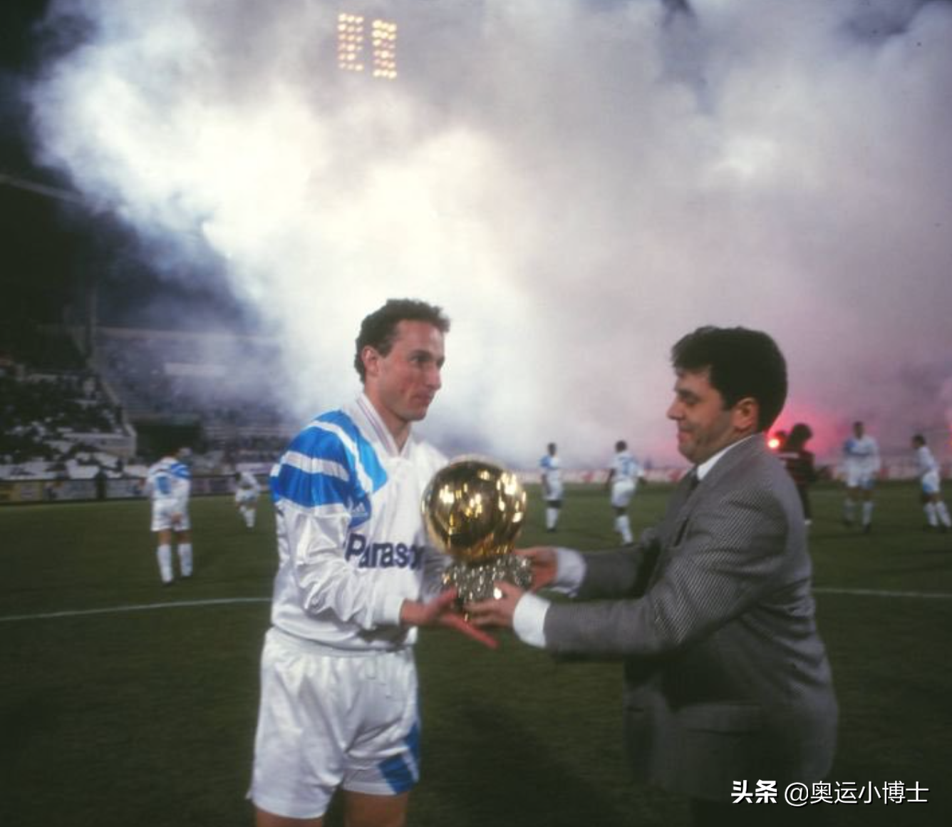 相对于其他知名球星来说,帕潘的生涯开启得比较晚,21岁才稳定踢上职业比赛,好在没两年就因为高进球率被法甲的豪门马赛相中,从此踏上了光荣之路。上世纪80年代末期,法甲的金元风暴已经初露锋芒,马赛主席塔皮是其中的代表人物。